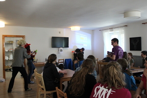 Již, když jsme se objevili na zastávce a kolem bylo slyšet pět různých hudebních žánrů najednou, věděli jsme, že toto soustředění bude nemálo náročné. Jeden org oblečený jako kdyby byl celou noc v rave klubu v Berlíně, druhý s oblečením tak mimo módu, že by zapadl možná jen do 18. století, třetí s kolty u pasu, širokým kloboukem a kytarou přes rameno, čtvrtý s černočerným baggy fitem a pocitem, že umí korejsky, a poslední s vyholenou hlavou a nečitelným názvem kapely na triku. Sotva jsme se rozkoukali, už nás nutili motat se do klubíček a zase se rozmotávat. A aby toho nebylo málo, tak nás nechali v lese plném D-Mollů lovit co největší živočichy. I tak jsme cestu přežili a došli až na objekt.