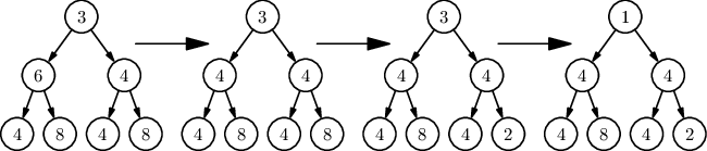 Formát vstupu: Na prvním řádku je číslo H – výška pyramidy. Poté následuje H řádků, na i-tém z nich je 2i čísel (řádky indexujeme od nuly) – výšky studentů v dané hladině pyramidy. Následuje číslo S – počet studentů, kteří se přijdou zapojit později. Nakonec následuje S čísel na jednom řádku s výškami příchozích studentů (v pořadí, jak přicházejí).
